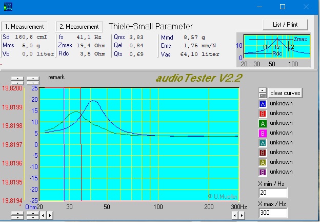 Поэкспериментировал с 10гд-36к с магнитной системой от 15гд-14. Катушки китайские 6,7ом по постоянке (намотка 10мм) с алиэкспресс. Получился низкочастотник со срезом АЧХ около 4,5кгц. Qts-0,39, резонансная 36гц Vэкв-около76л. Осевой ход правда всего 3мм. По чувствительности на слух как 4гд-5. В ФИ литров под 40 должно нечто дельное получится.