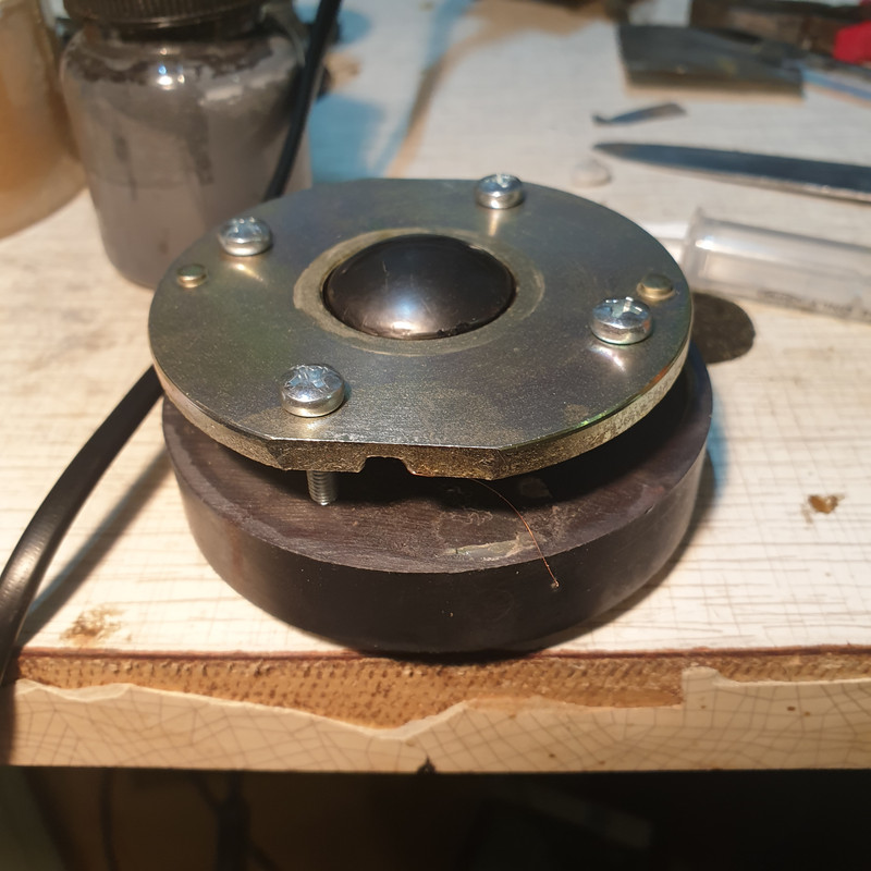 Если придумать какие тонкие крючки или петлю (двес с обеих сторон) из нитки под нижний край катушки и феном излучателю лысину нагреть?! Вдруг подвижка из-за разрушившегося ППУ подвесика, тупо просела под сигналом на демпфер под излучателем и залипла на нём?
