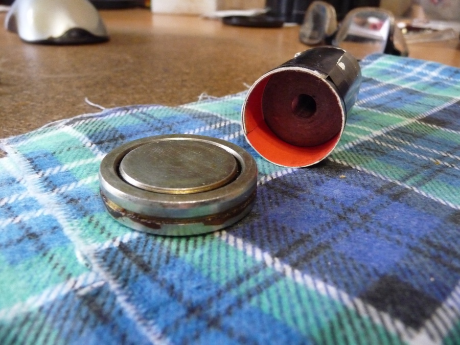 Один из пары 8ГД-1-25 имел остаточную индукцию в зазоре после десятка лет лёжки в гараже 570,7 mT. После первой попытки стало 622,8 mT. После второй 985,8 mT. И последняя, третья выдала в зазор 1065,6 mT. Привез второй динамик у которого остаточная была за 600 mT. Было четыре попытки. Выше 998,8 mT так индукция и не поднялась. Магнит с щербинами по краю, приклеен кривовато, и настораживает количество клея. У первой МС со сборкой всё нормально на первый взгляд.