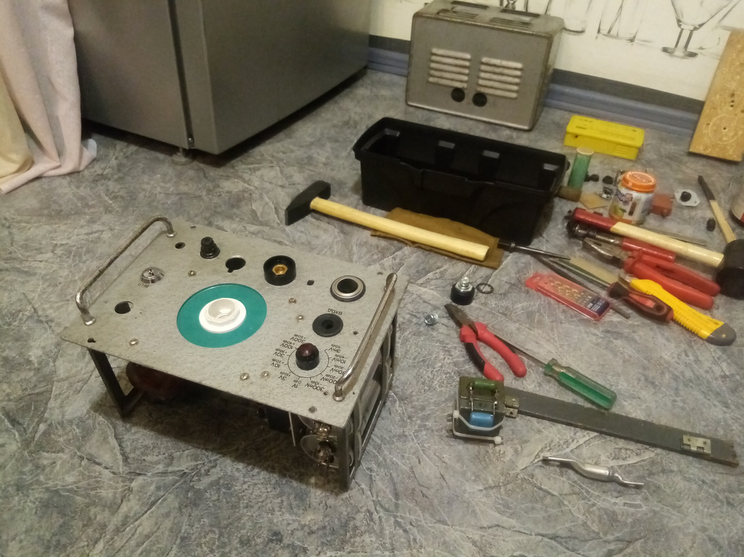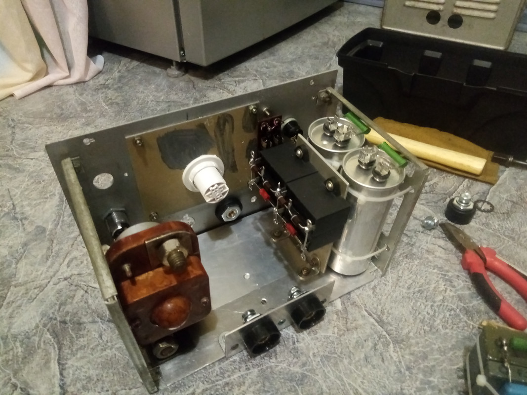 Само собой, техника безопасности.. Корпус и шасси металлические. Схема бестрансформаторная, напруга - космос! С шасси не должно быть соединено ни одного провода! На нем есть только зажим заземления, без которого аппарат категорически не включать!!!