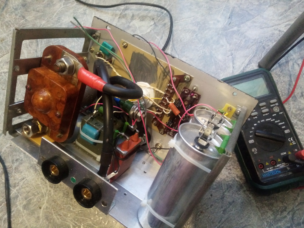 Индуктор в сборе с магнитной системой. Соединяется с блоком управления сварочными проводами и разьемами. Батарея накопительных кондеров подключается отдельно, по аналогичному принципу, но с задней стороны блока.