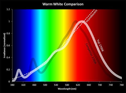 Качество света определяется и непрерывностью спектра. Дешевые лампы имеют изрезанный спектр и вроде как цветовая температура объективно получается, но человек привык к сплошному спектру. [
