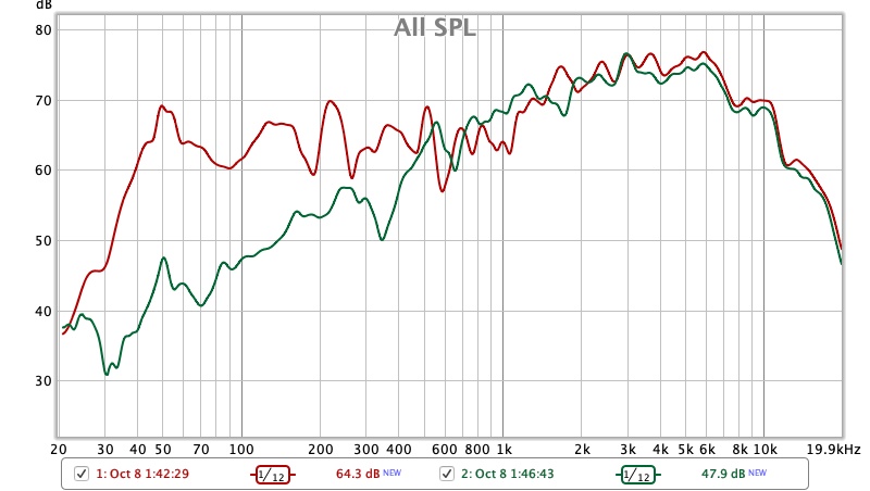 Всплеск на 50гц визуально убираем на графиках, толи глюк карты, или микрофона, иногда исчезает всё же, так на других замерах бывает... Да коленвал есть конечно по ачх, но и у дорогущей импортной акустики он есть...