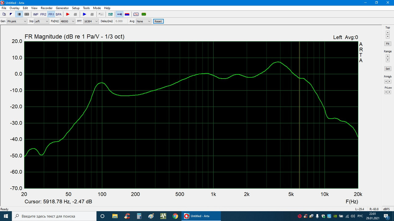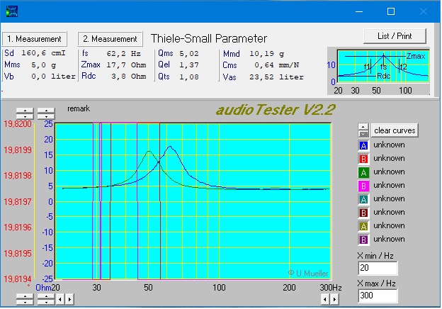 Напилить, нарезать, настрогать - не проблема, измерить - пока проблема... Вчера пробовал TS снять, ручным методом дальше Fs не продвинулся, не получается F1 и F2 поймать... Попробовал “Audiotester”, всЁ работает, а результат не даёт, сегодня Арту буду «мучить»...
