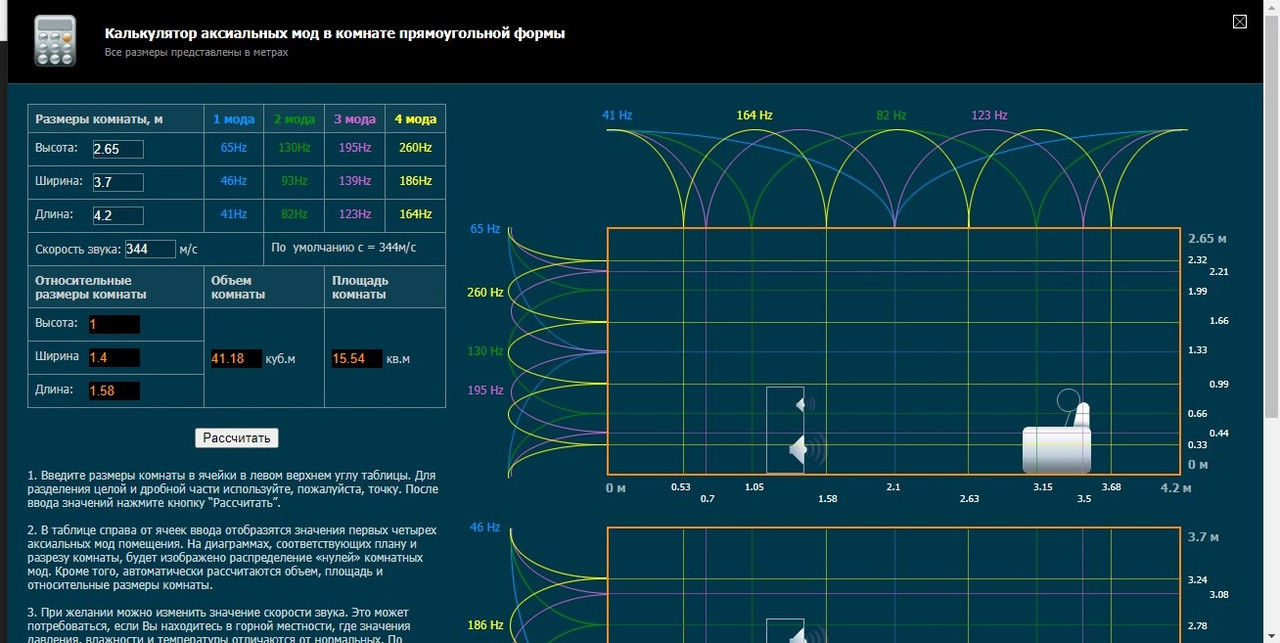 Комната нормально заглушенная. Огибающая порядка 80 мсек, это около 12 Гц. Сигнал 100 Гц (10 периодов) Что может так резонировать на 88 Гц или на 112 Гц? Комнатные моды такие: