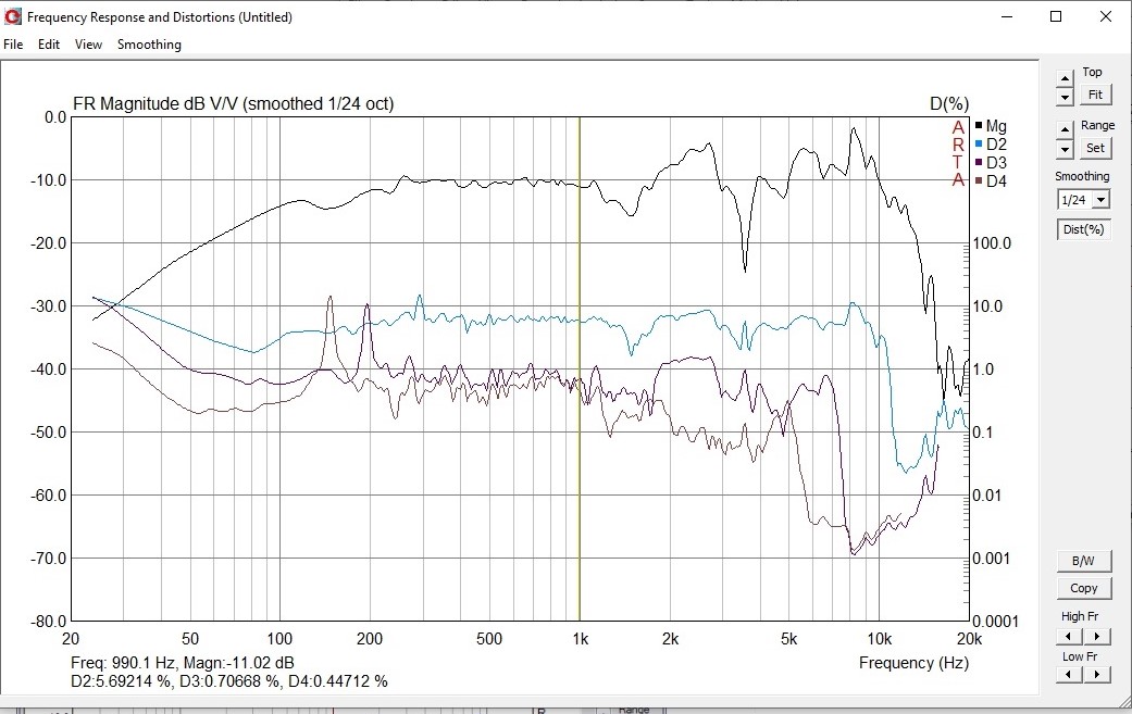 Обратите внимание на участок ниже 100 Гц и на уровни третьей и четвёртой гармоник Условия снятия АЧХ были одинаковы.
