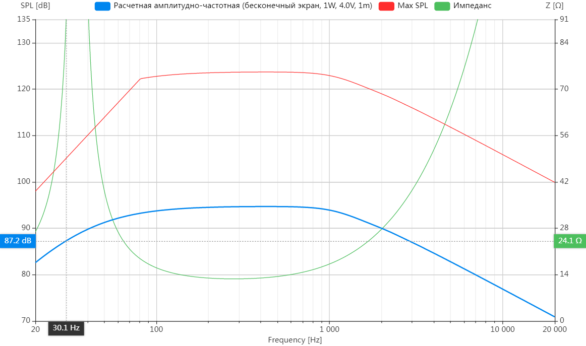 Я понимаю, что чувствительность везде приводится на 1 кГц, и что 95 дБ на 30 Гц там не будет Какая будет чувствительность на 30 Гц у такого динамика в стене?
