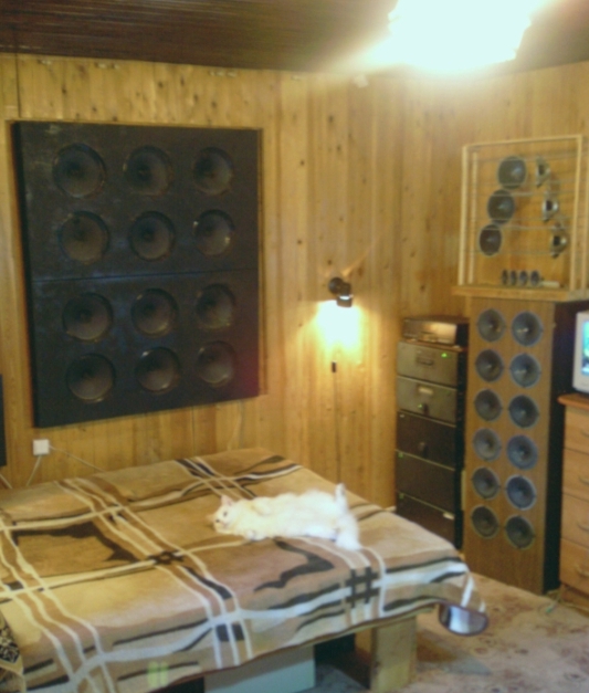 омельян, ОЯ... Большой.. За стеной комната . Метров 7 кв м .. Обшита вагонкой . Приличный обьем. Стена - кирпич . С фасада - дсп . Вплотную . Куда собственно и креплю ГД . Да собственно ... уже лучше ! Пару дней паоганял . Поставил мощный унч . Кроссоверы. И ЕЛОУ в помощь.