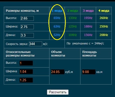 Частоту в 30 Гц в данной комнате получтить можно .. а вот услышать ... вопрос . Гул - возможно . Звук -нет